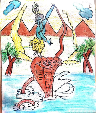 சிறுவனாக இருந்த கண்ணனின் காளிங்க நர்த்தனத்தின் மூலம் அந்தப் பாம்பின் விஷம் முழுவதும் அகன்றுவிட்டது. அதைப்போலவே நமது நாவிலும் கண்ணனின் நாமம் இடைவிடாது ஒலிக்குமானால், நச்சு நீங்கி அந்த நாவானது பிறர்க்குத் துன்பம் தராமல் இனிமை பெறும்.